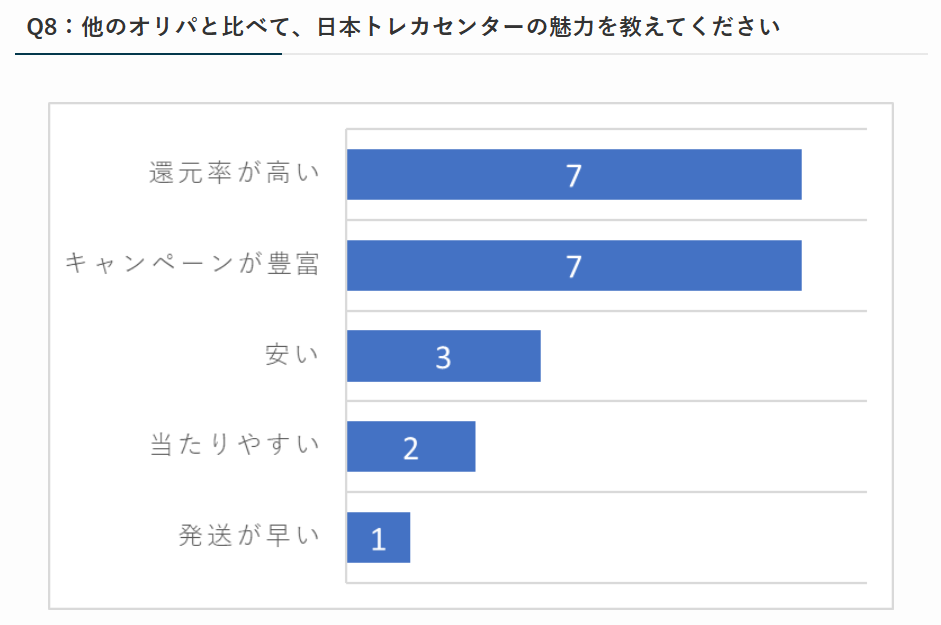 以下のアンケートでも他のオリパよりも「還元率が高い」「キャンペーンが豊富」という声が多いです。